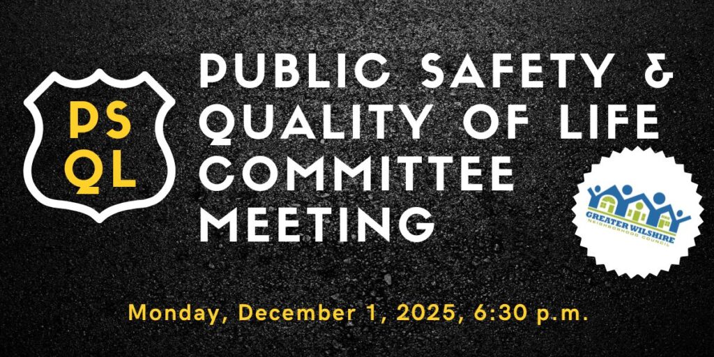 Agenda: check https://greaterwilshire.org/public-safety-quality-of-life-cmte/.