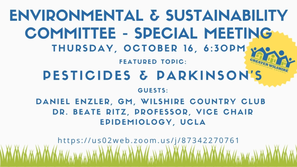 The Committee has invited two speakers, Daniel Enzler, General Manager of the Wilshire Country Club and Dr. Beate Ritz, Professor and Vice Chair of the Epidemiology Department, UCLA to speak to the community.